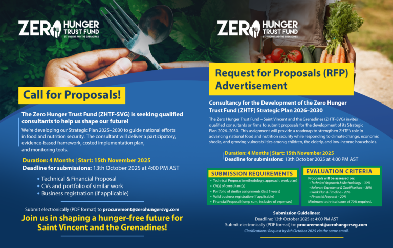The Saint Vincent and the Grenadines Zero Hunger Trust Fund, has as its main objective supporting the multifaceted efforts needed to eradicate hunger in Saint Vincent and the Grenadines.